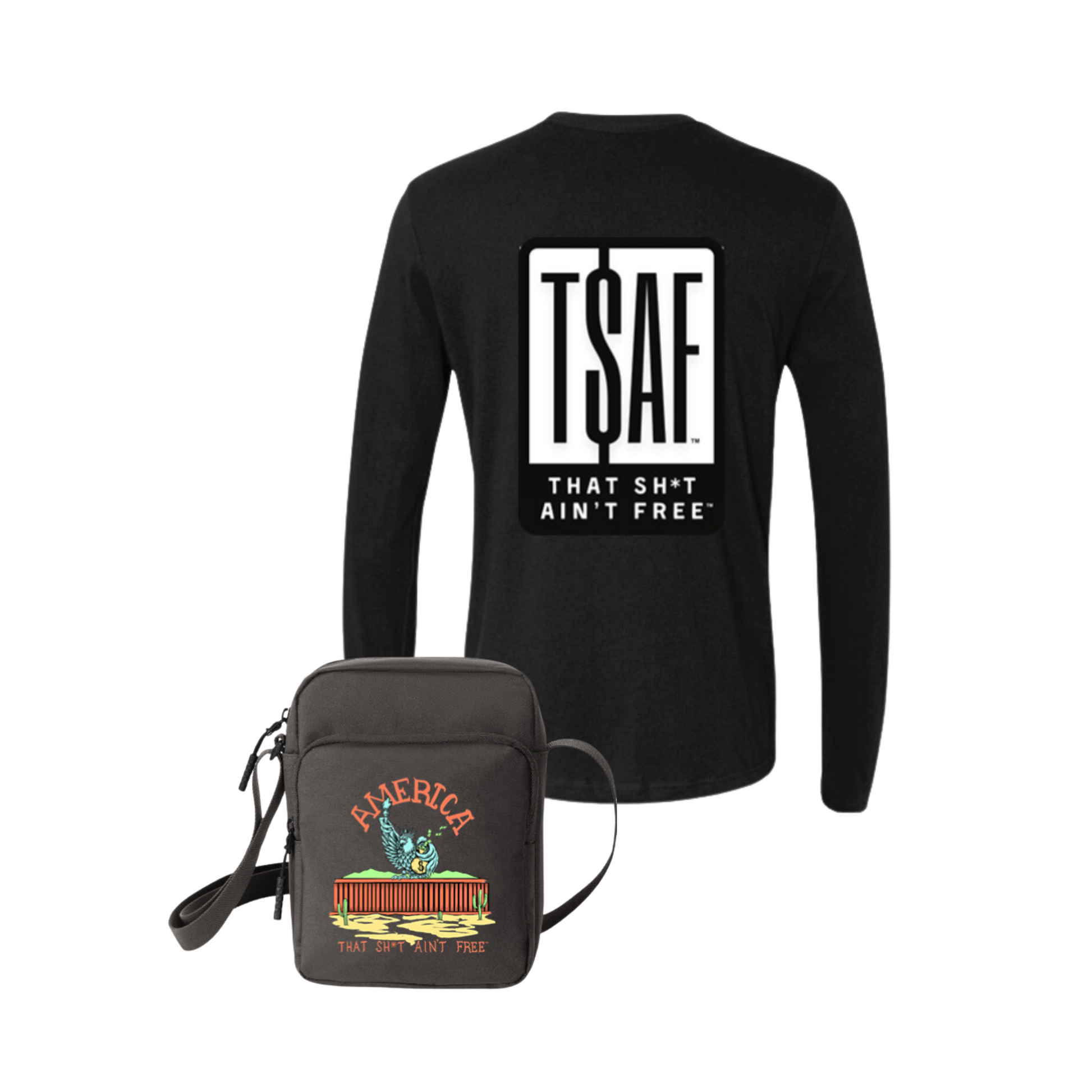 ITEM #1. Our simple logo that incorporates the $ sign reminds us that whatever your SH*T is in life (good and bad) IT AIN'T FREE! Large back logo design with same logo on front over left chest.