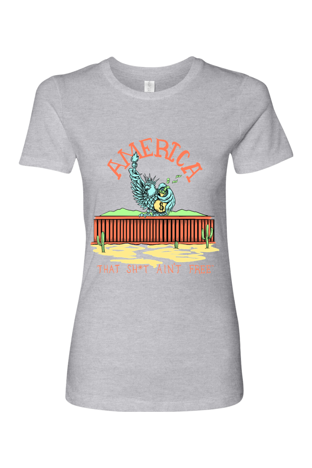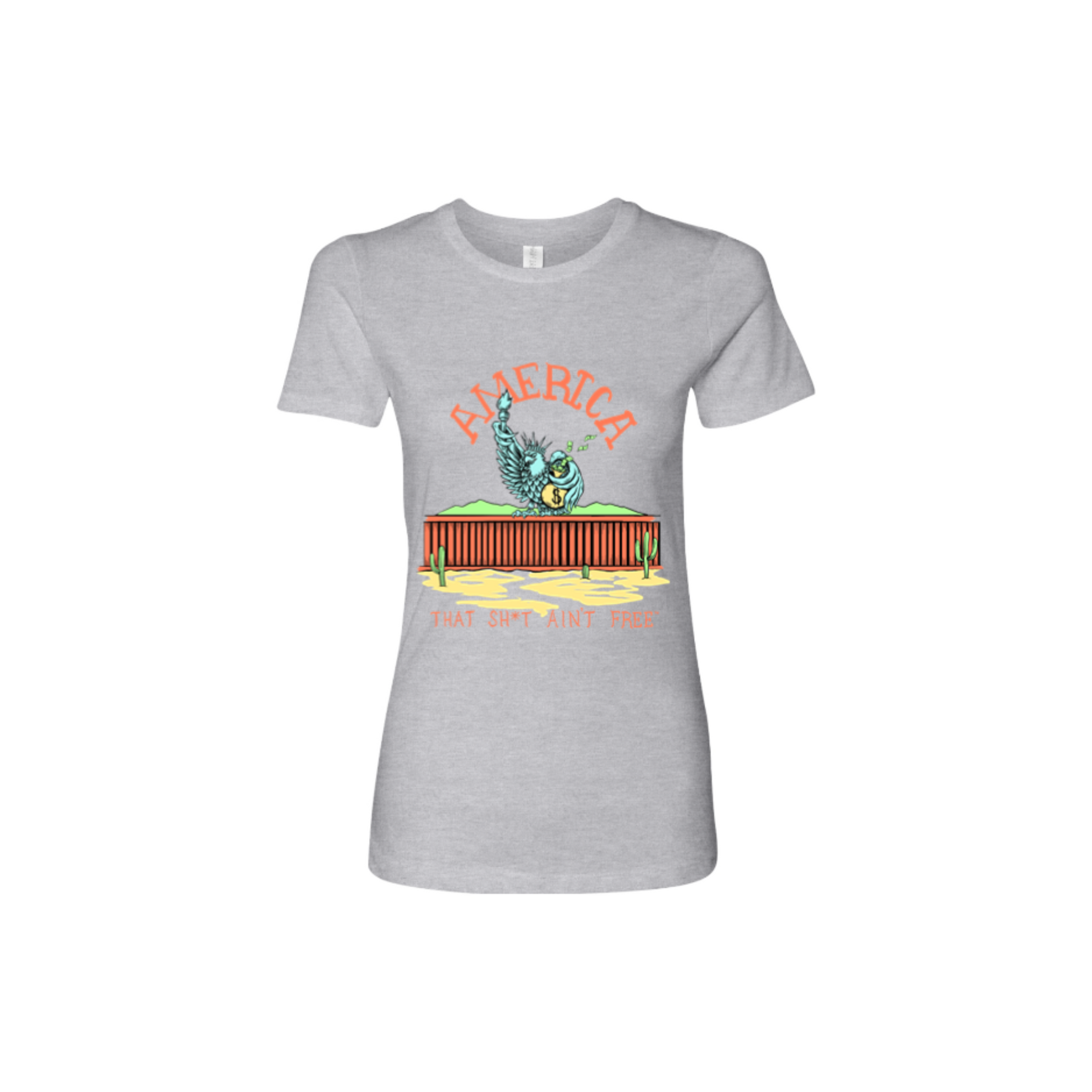 Ladies 100% combed ring-spun cotton, jersey, short sleeve, crewneck tee. Unless you are petite- you'll want to go up one size from what you regularly wear.